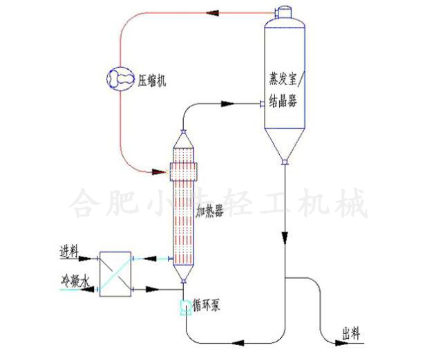 MVR強制循環(huán)蒸發(fā)結(jié)晶器工作原理: